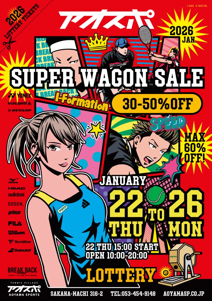 1/22(木)から26(月)まではスーパーワゴンセール!年に一度のアオスポ祭りです!大手チェーン店のセール価格にも全く引けを取らない衝撃価格でお待ちしています!